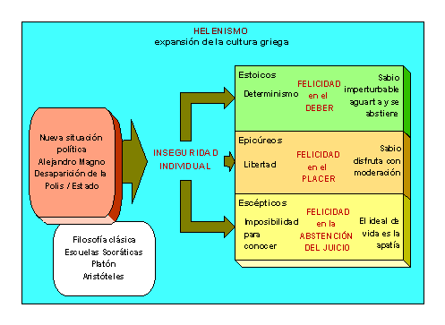 Período de tiempo que comienza con la muerte de Alejandro Magno en el 323 a.C., y llega hasta finales del s. II d.C. El helenismo es propiamente el fenómeno de difusión del espíritu griego (lengua y cultura) en el ámbito del mundo oriental, difusión que supone una universalización de esta cultura, vehiculada por el griego como idioma común (koiné), dentro no obstante de un proceso histórico de descomposición del imperio macedónico, que pasa por las fases de desmembración, conquista de Grecia por Roma y el surgimiento del imperio romano. En ocasiones se asigna el comienzo de la época helenista a los años de la conquista del imperio persa por Alejandro Magno y su acabamiento a los años del apogeo del imperio romano, alargando incluso el período grecorromano hasta la caída del imperio romano. Esta época de profundas transformaciones sociales está marcada por la aparición de las llamadas a) escuelas helenísticas y b) el florecimiento de la ciencia griega, así como por c) la decadencia de la ciencia helenística.